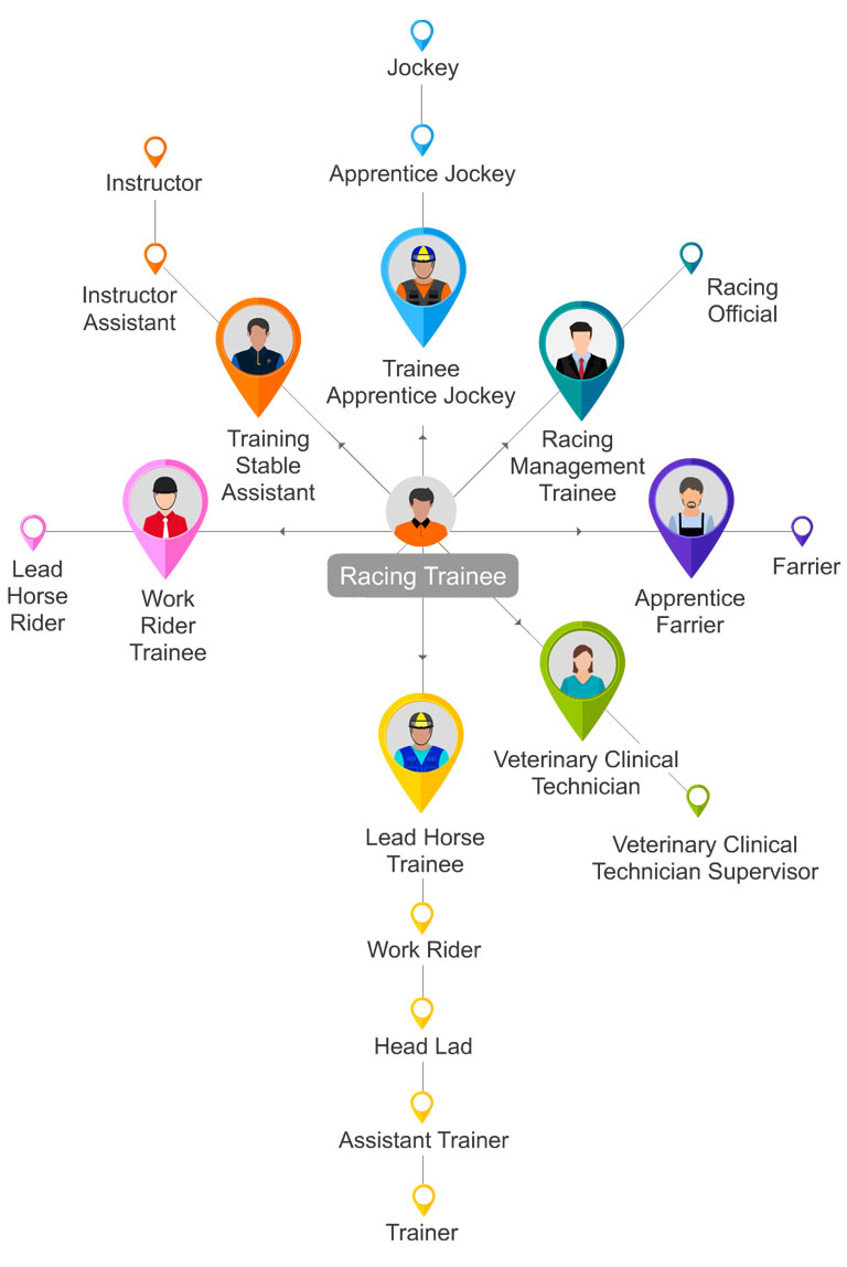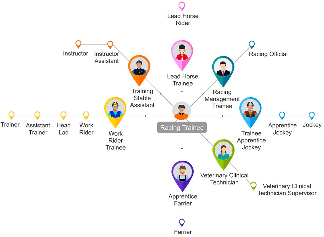 Students who have completed the Foundation Course, and who are assessed to be competent on all given topics and of good character, will be considered either for employment as Trainee Work Riders, Equestrian Assistants, or for further training as Trainee Apprentice Jockeys.
